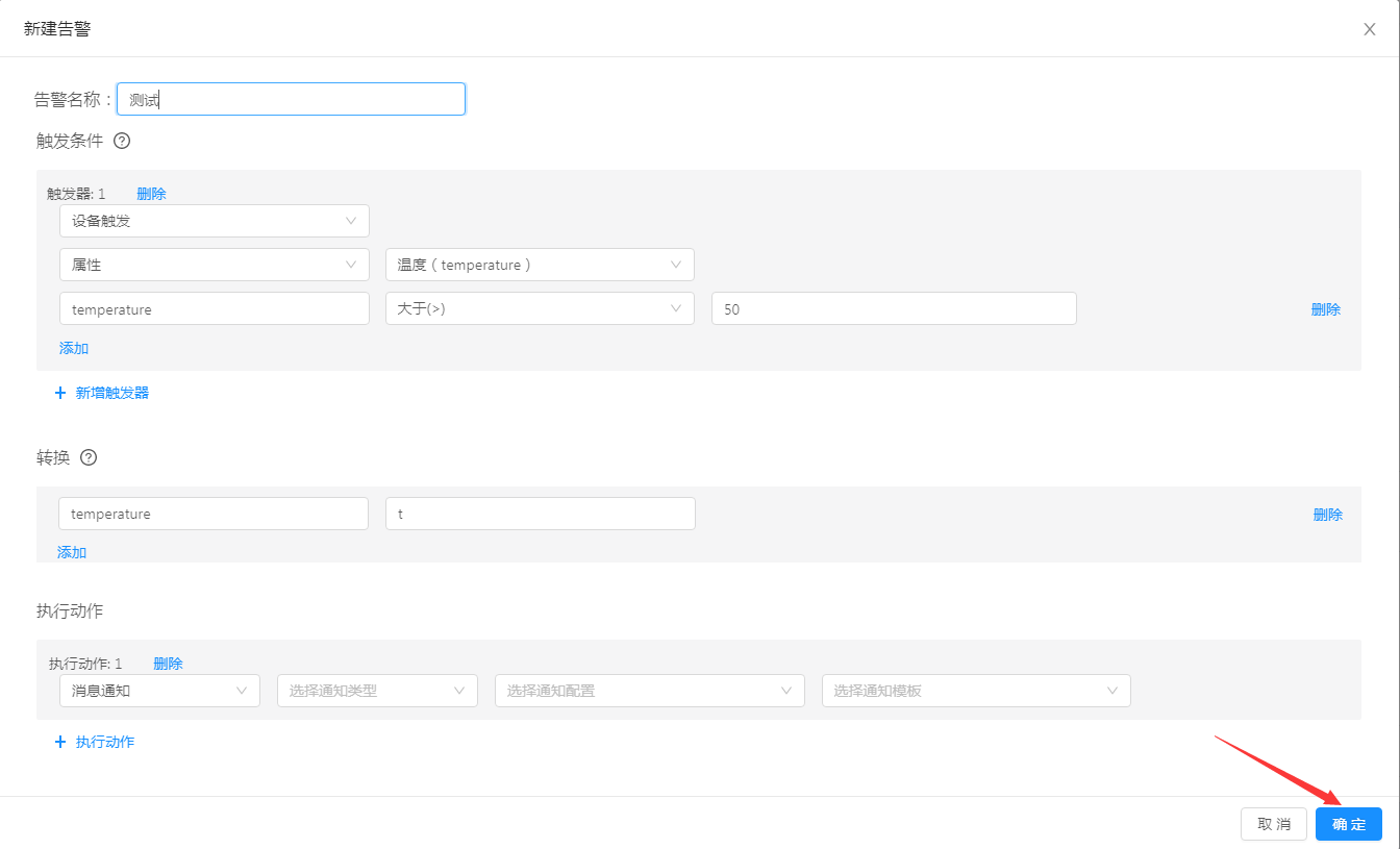 通过规则引擎来设置告警规则,并启用相应动作如通知来转发告警消息。
